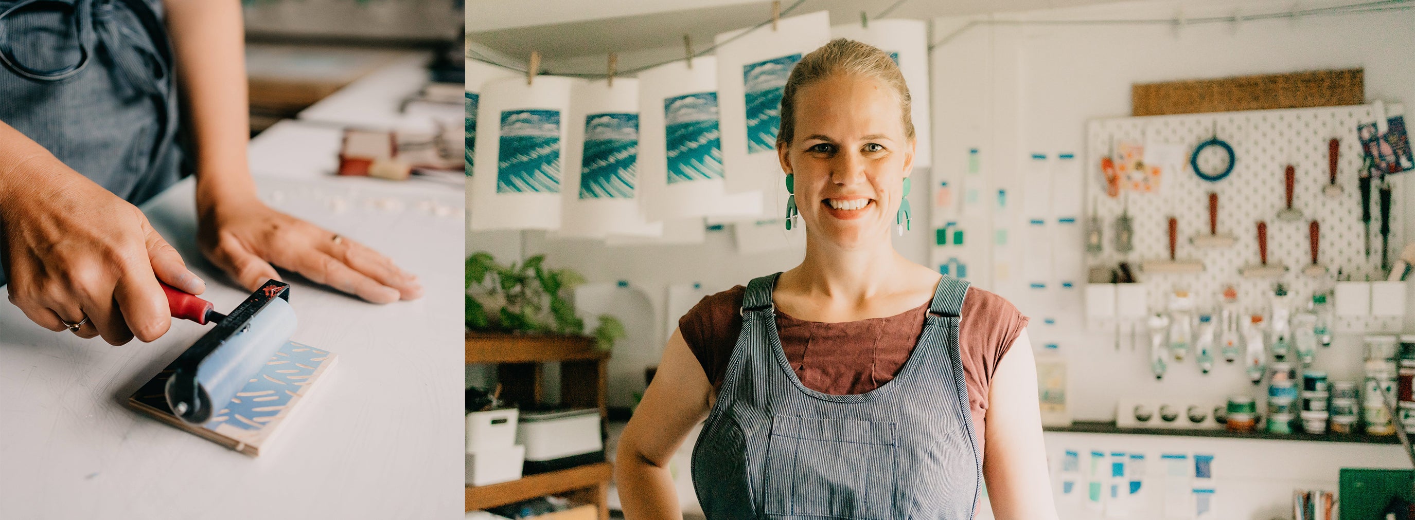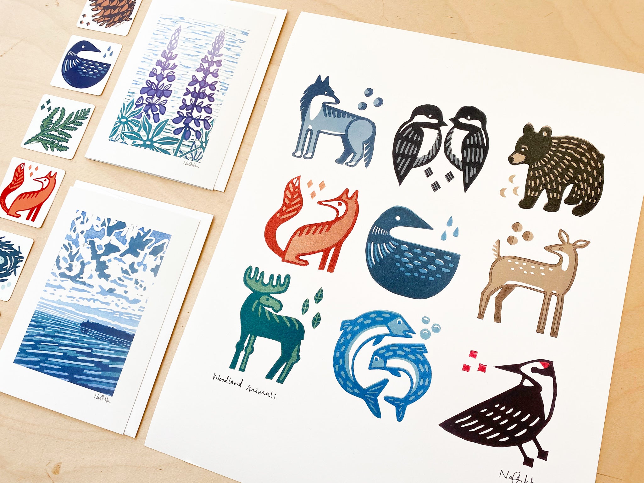 Nan began her printmaking business in 2017 to sell limited edition woodcut prints. In 2021 she launched a wholesale catalog with stickers, greeting cards, calendars, giclées, and other merchandise created from her woodcut images.