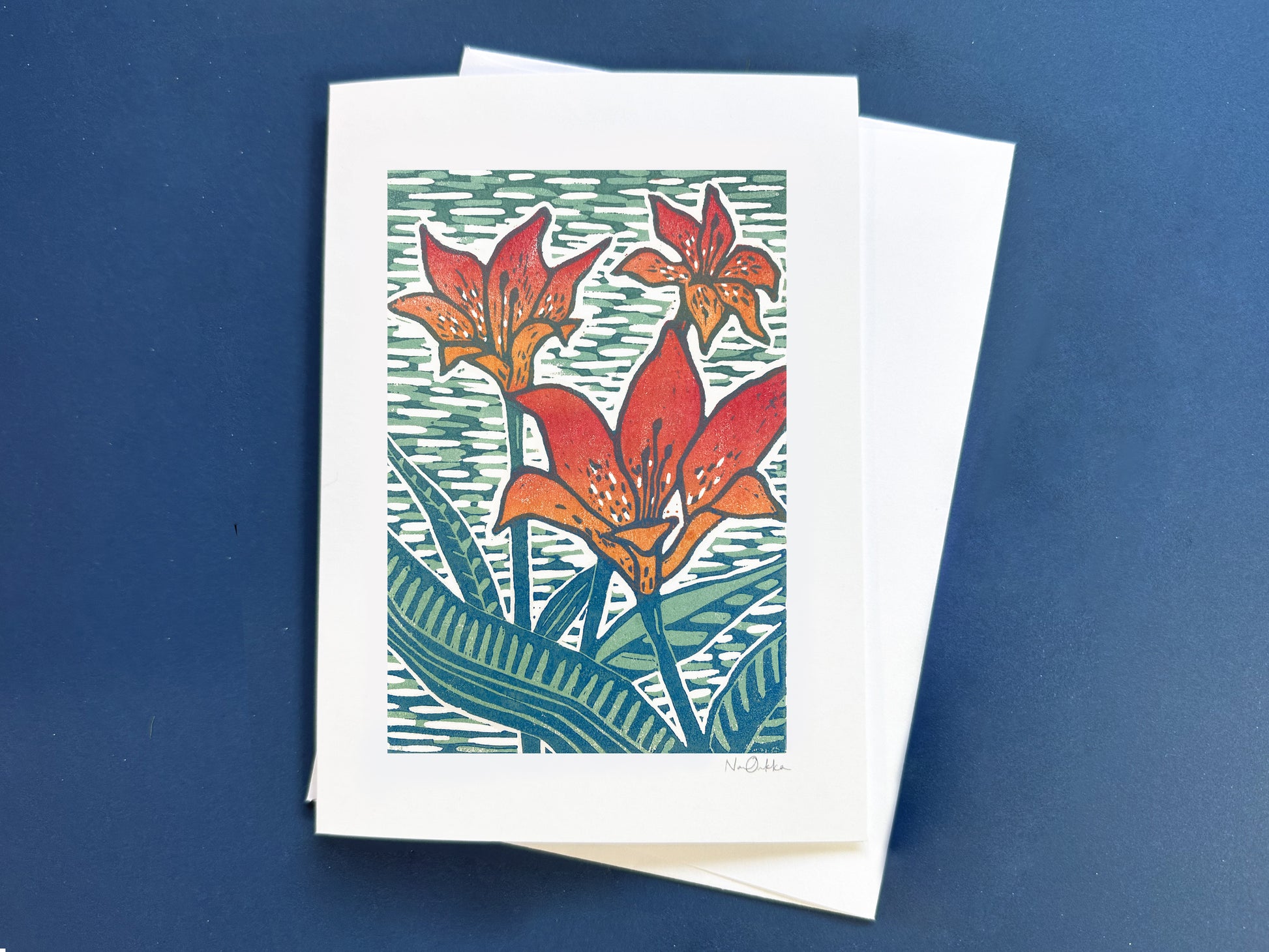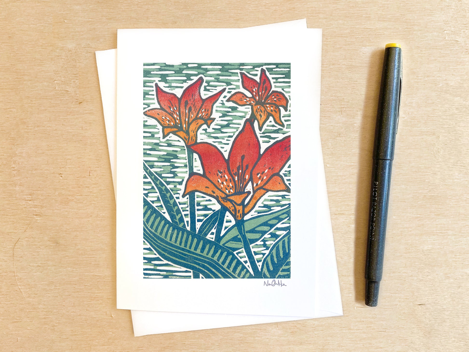 Looking for a uniquely beautiful greeting card that's both eco-friendly and locally crafted? You've come to the right place! These blank greeting cards come in the standard A6 size with white envelopes. Each card features one of Nan Onkka's timeless woodcut prints. The original woodcut was hand-carved by Nan in her home studio in Grand Marais, Minnesota. Her artistic skill and attention to detail shine through in every card, making them truly one-of-a-kind. Whether you are celebrating a milestone, mourning a loss, or simply saying hi, these blank cards are perfect to have on hand for any occasion.