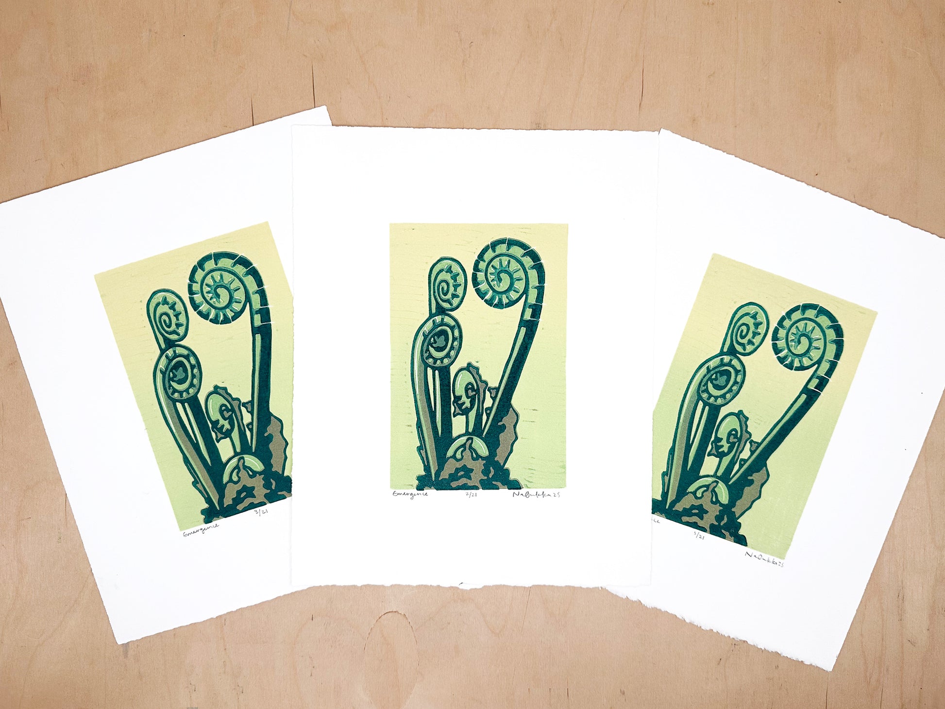 This is an original limited edition woodcut print. The image was hand-carved on a wood block and printed by hand. Each print is nearly identical. However, each one is handmade so please understand that there will be small variations among each print. The image is printed on high-quality, archival printmaking paper. Each print is signed, titled, and editioned by the artist.