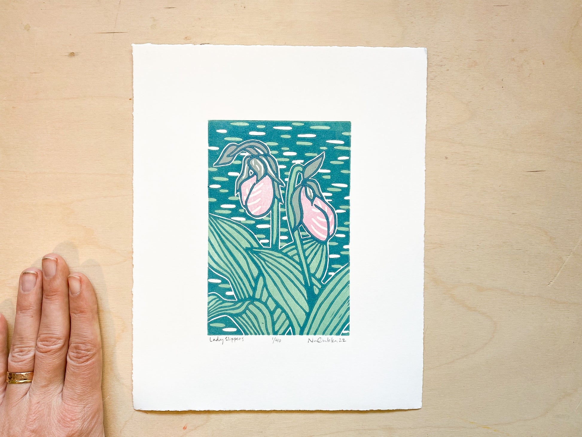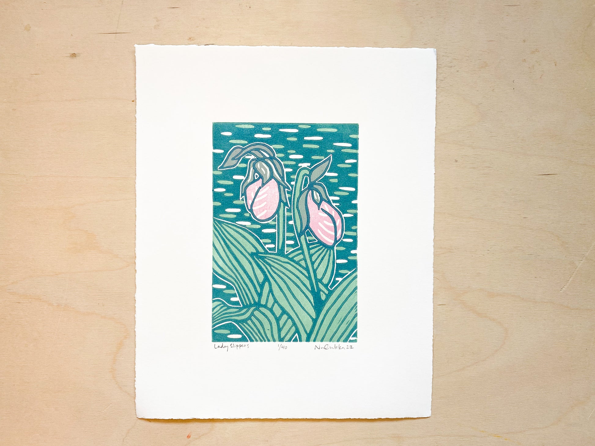 Lady Slippers Woodcut Print