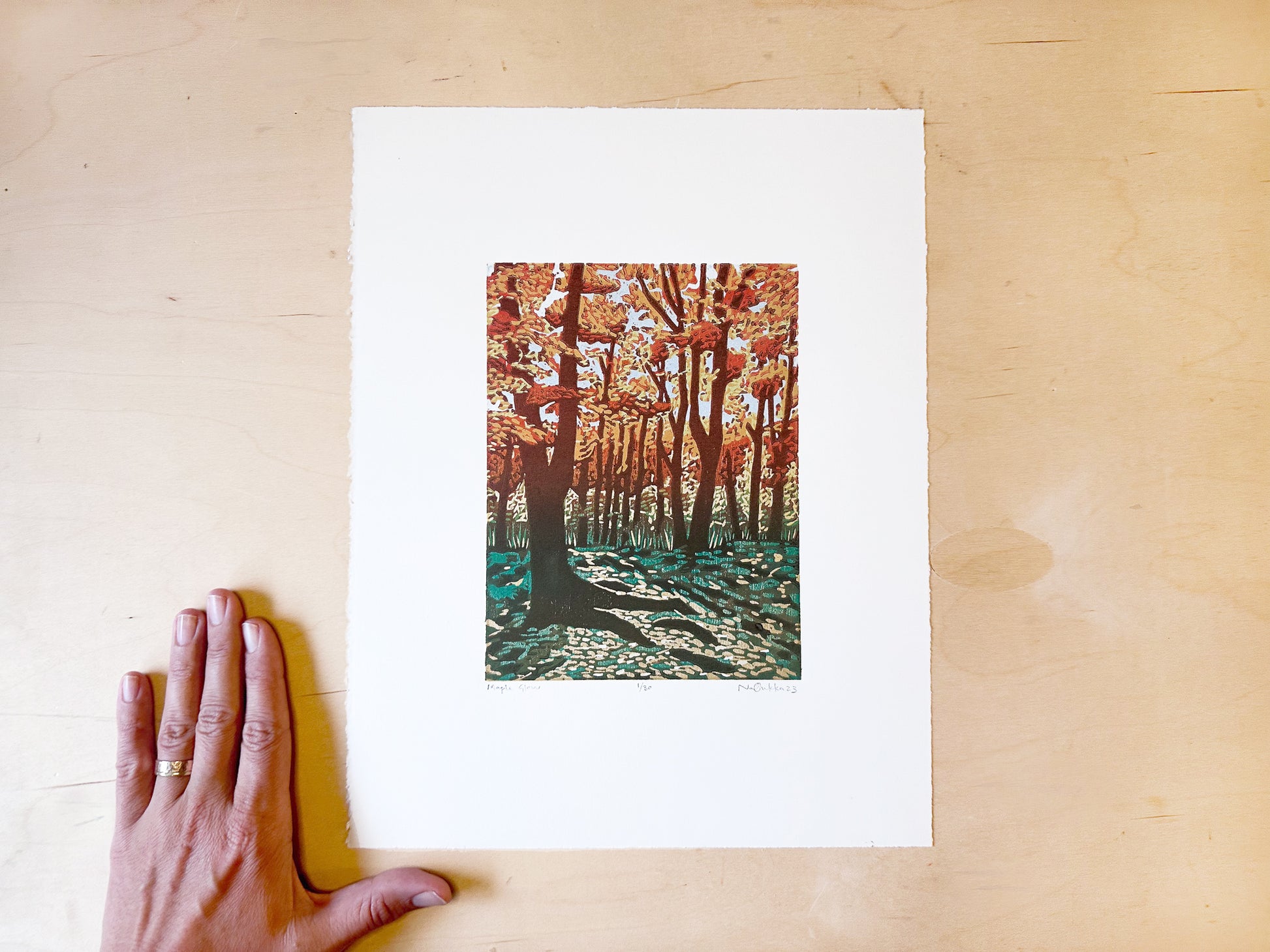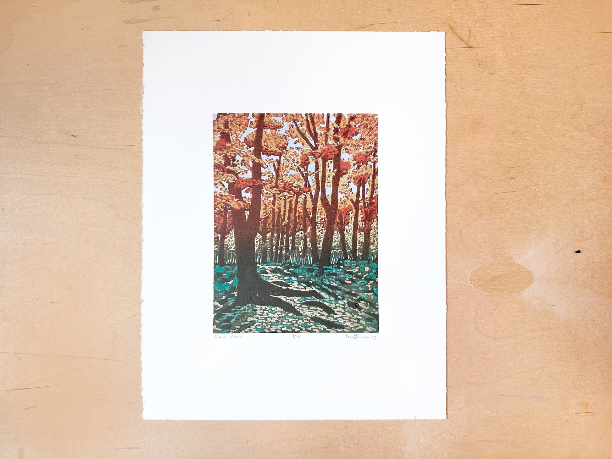 Maple Glow Woodcut Print