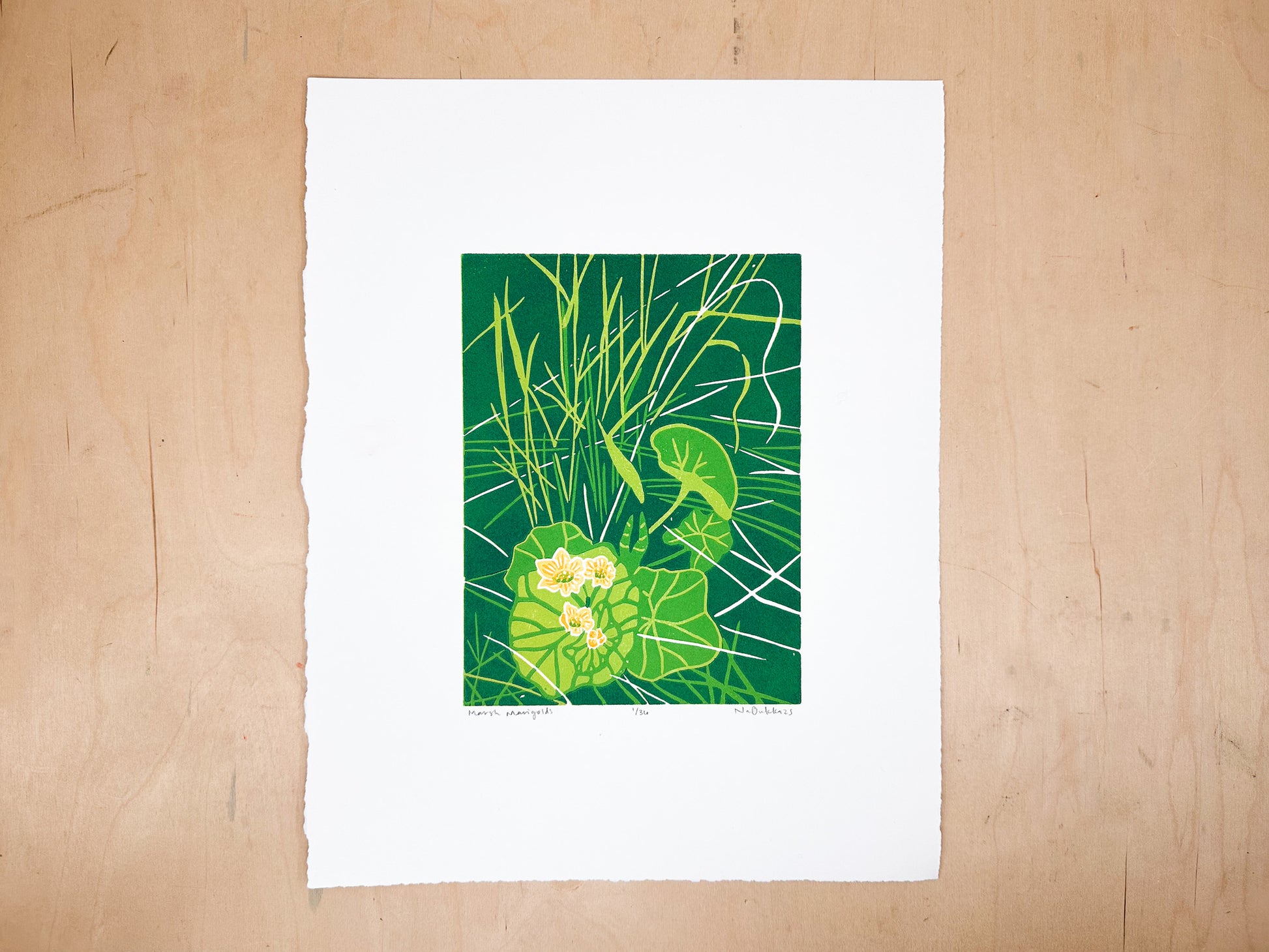 This is an original limited edition woodcut print. The image was hand-carved on a wood block and printed by hand. Each print is nearly identical. However, each one is handmade so please understand that there will be small variations among each print. The image is printed on high-quality, archival printmaking paper. Each print is signed, titled, and editioned by the artist.