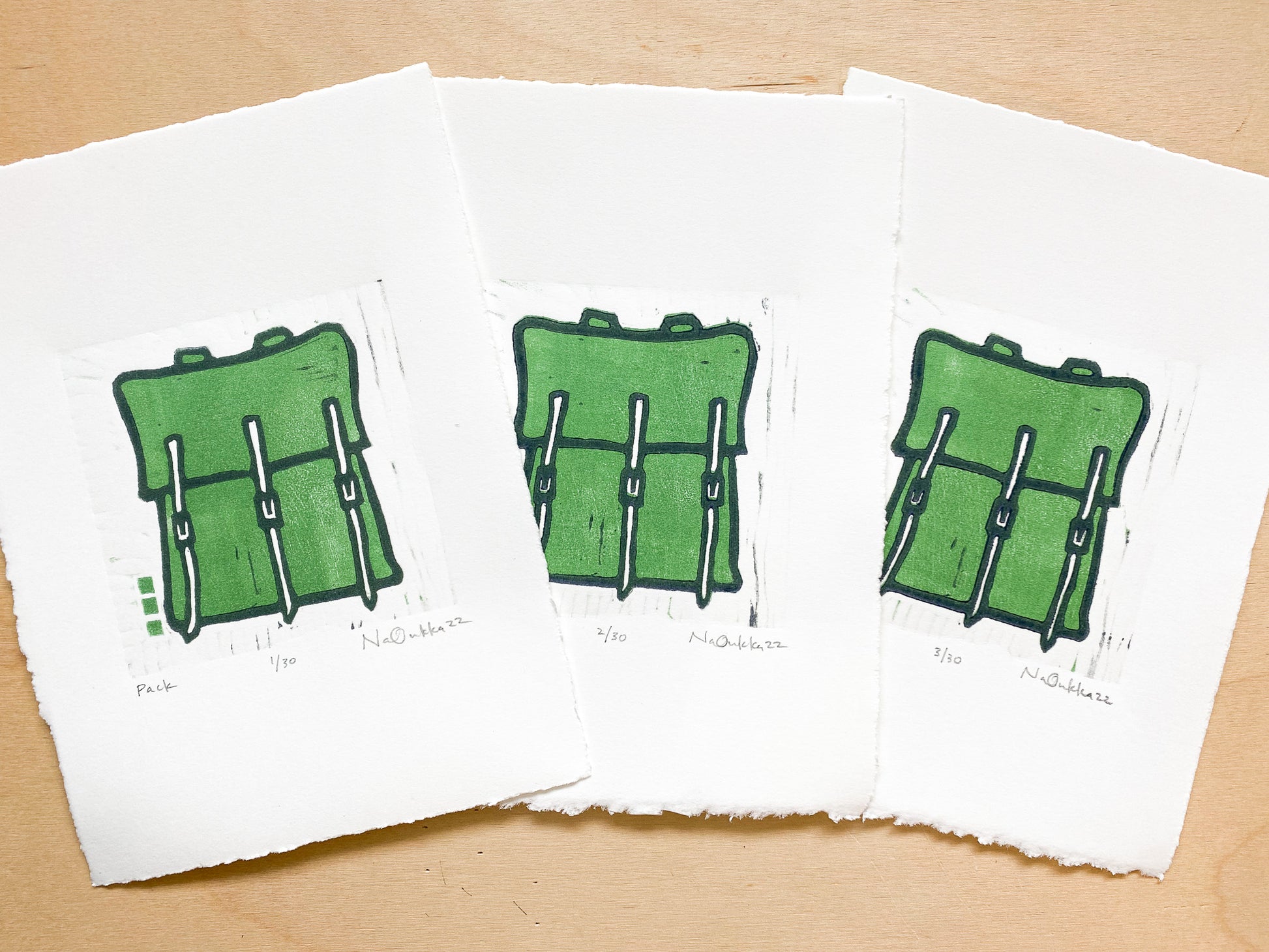 This woodcut print is part of the Woodland Adventure series created in 2022. Each of the 12 images in this series was inspired by my love of camping.