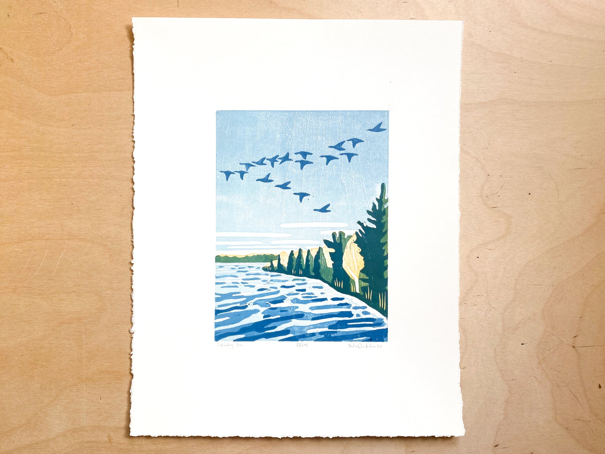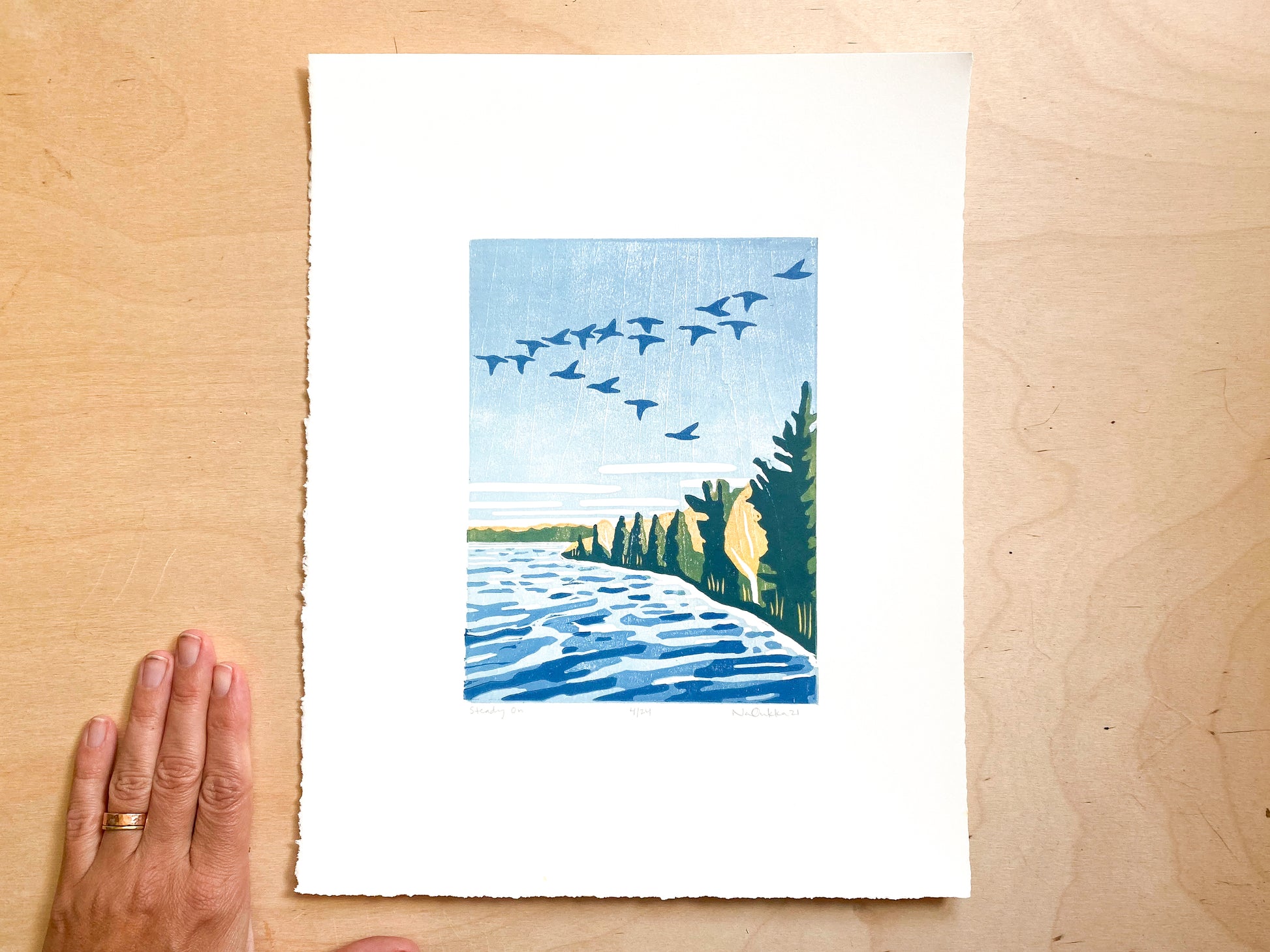 This is an original limited edition woodcut print. The image was hand-carved on a wood block and printed by hand. Each print is nearly identical. However, each one is handmade so please understand that there will be small variations among each print. The image is printed on high-quality, archival printmaking paper. Each print is signed, titled, and editioned by the artist.