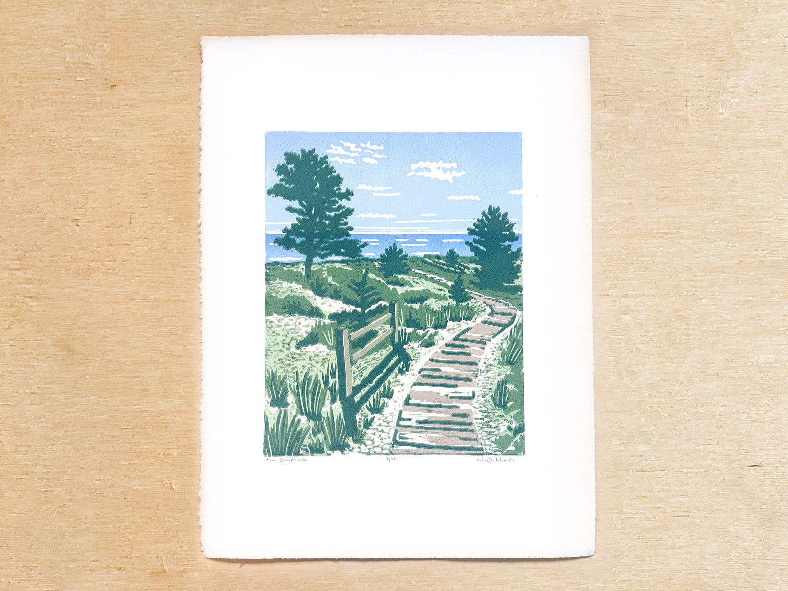 The Boardwalk Woodcut Print