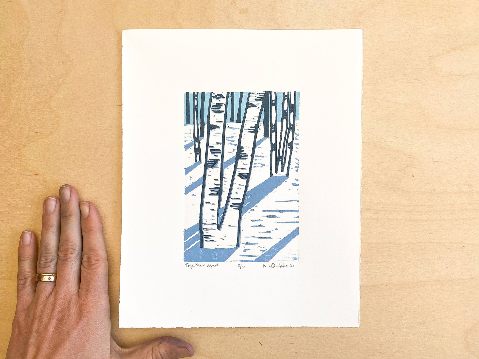 This is an original limited edition woodcut print. The image was hand-carved on a wood block and printed by hand. Each print is nearly identical. However, each one is handmade so please understand that there will be small variations among each print. The image is printed on high-quality, archival printmaking paper. Each print is signed, titled, and editioned by the artist.