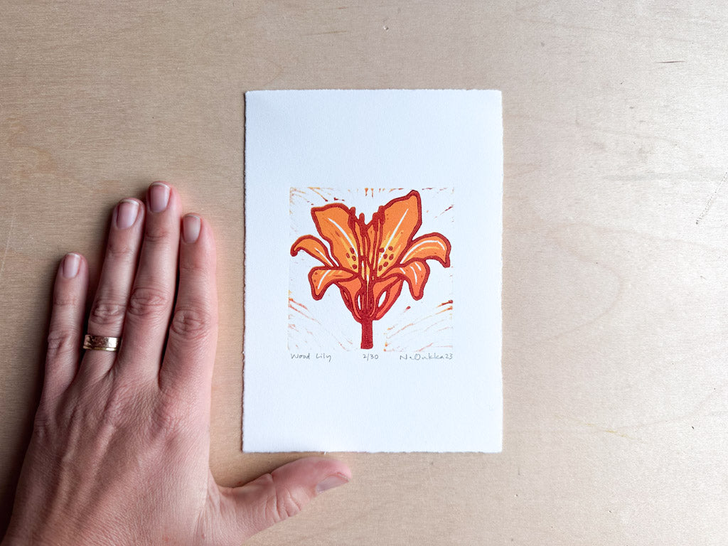This woodcut print is part of the Northern Wildflower series created in 2023. Each of the 12 images in this series was inspired wildflowers native to the northwoods.