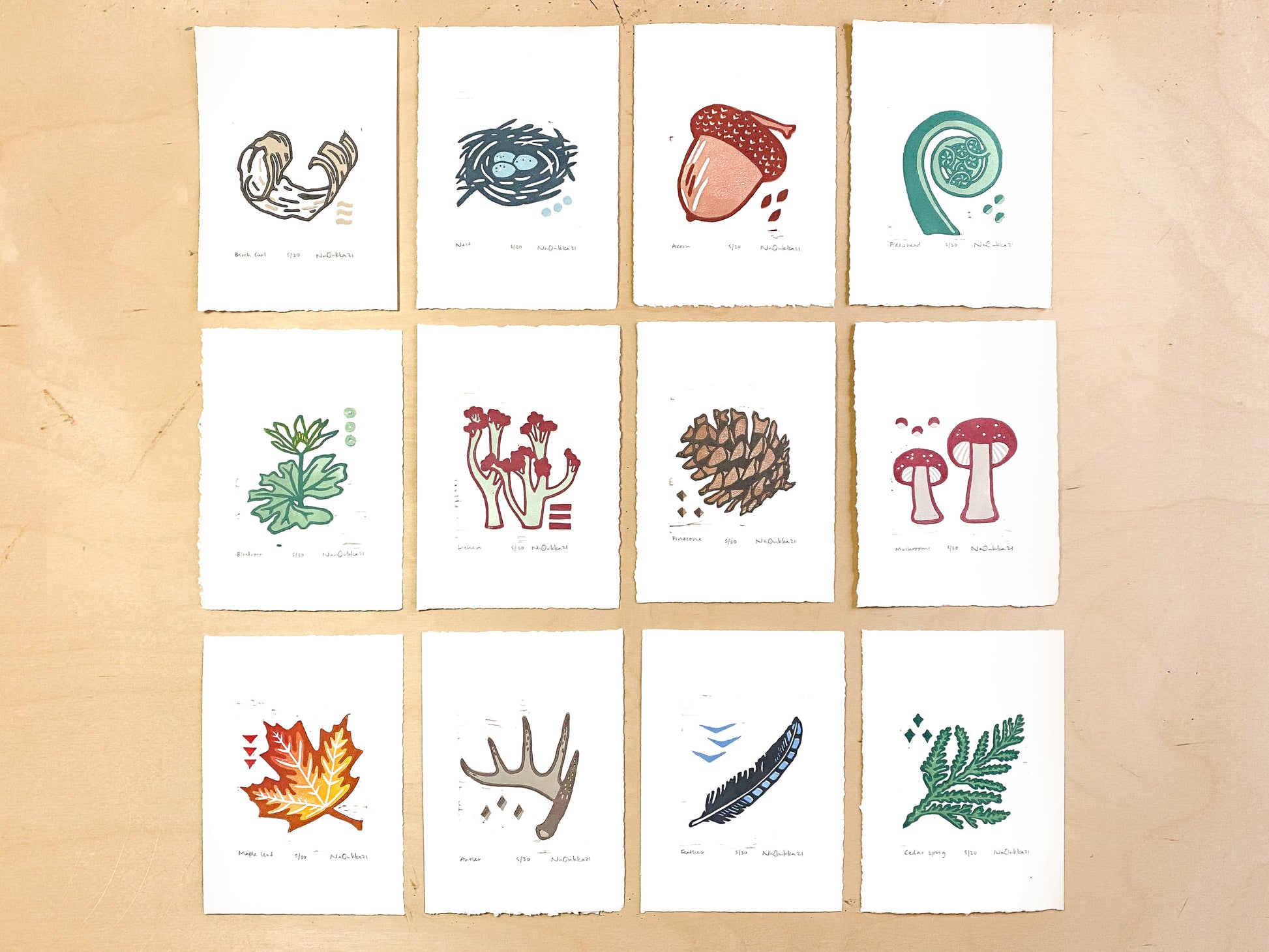 This print is part of the Woodland Treasures series created in 2021. Each of the 12 images in this series was inspired by walks in the woods.
