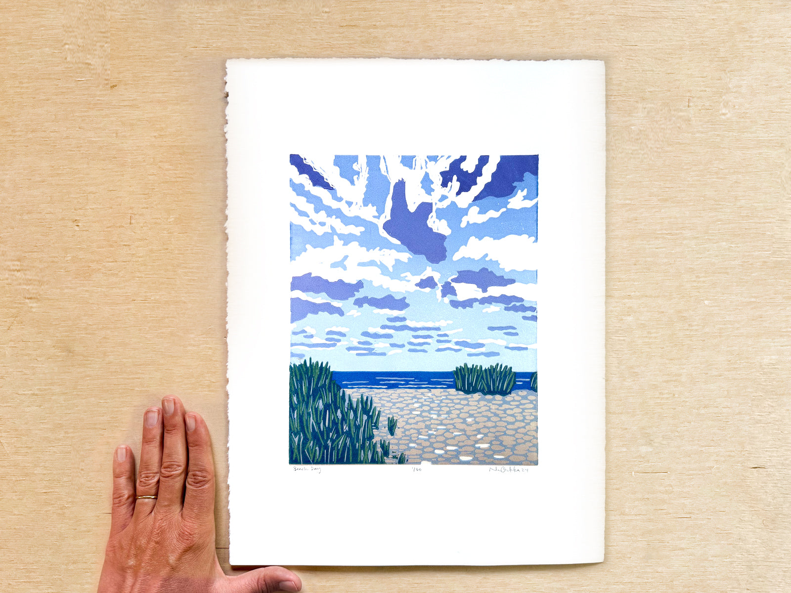 This is an original limited edition woodcut print. The image was hand-carved on a wood block and printed by hand. Each print is nearly identical. However, each one is handmade so please understand that there will be small variations among each print. The image is printed on high-quality, archival printmaking paper. Each print is signed, titled, and editioned by the artist.