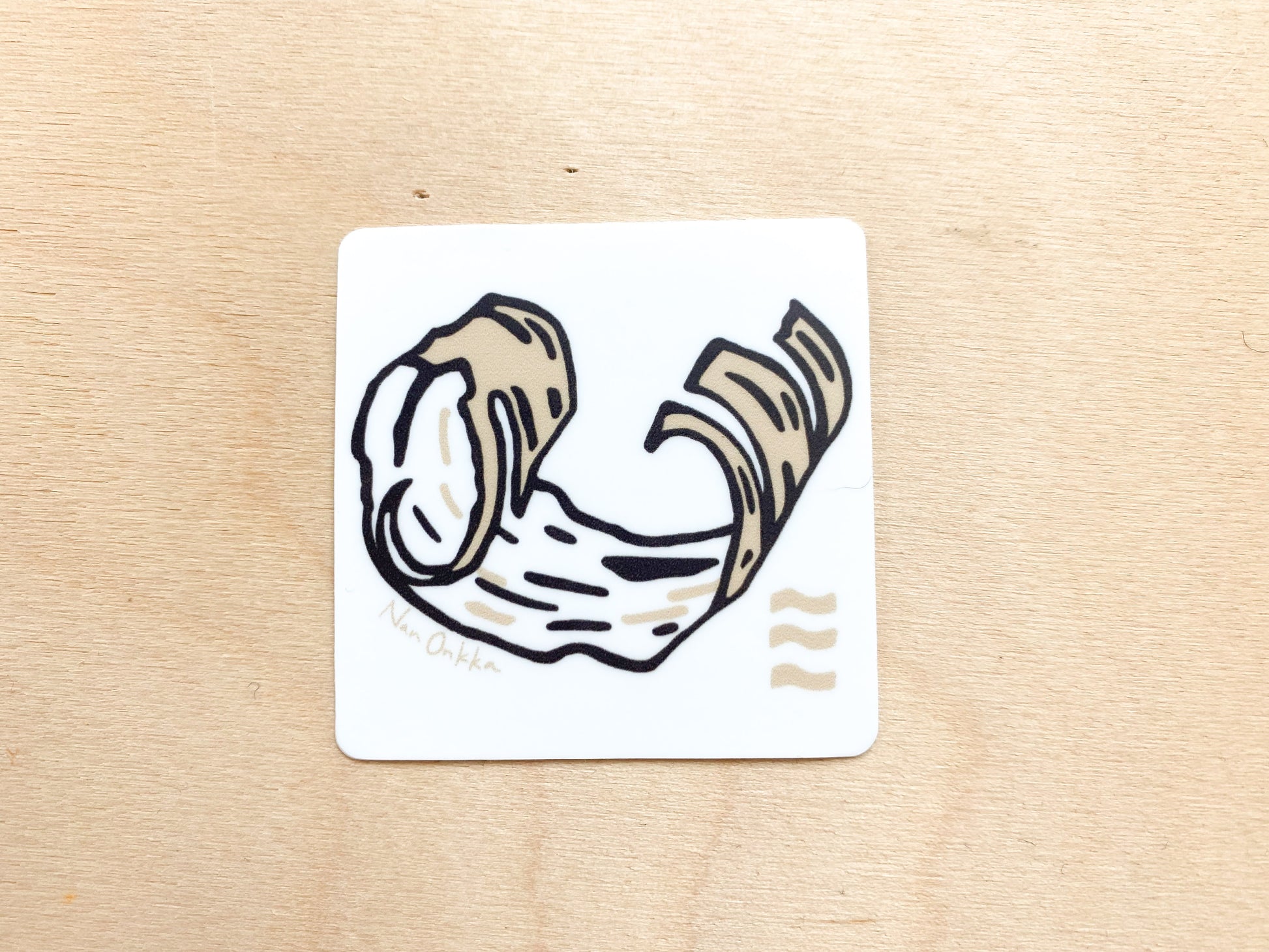 A vinyl sticker based on an original woodcut print. Scratch and weather resistant means it is perfect for your waterbottle, canoe, growler, or car.