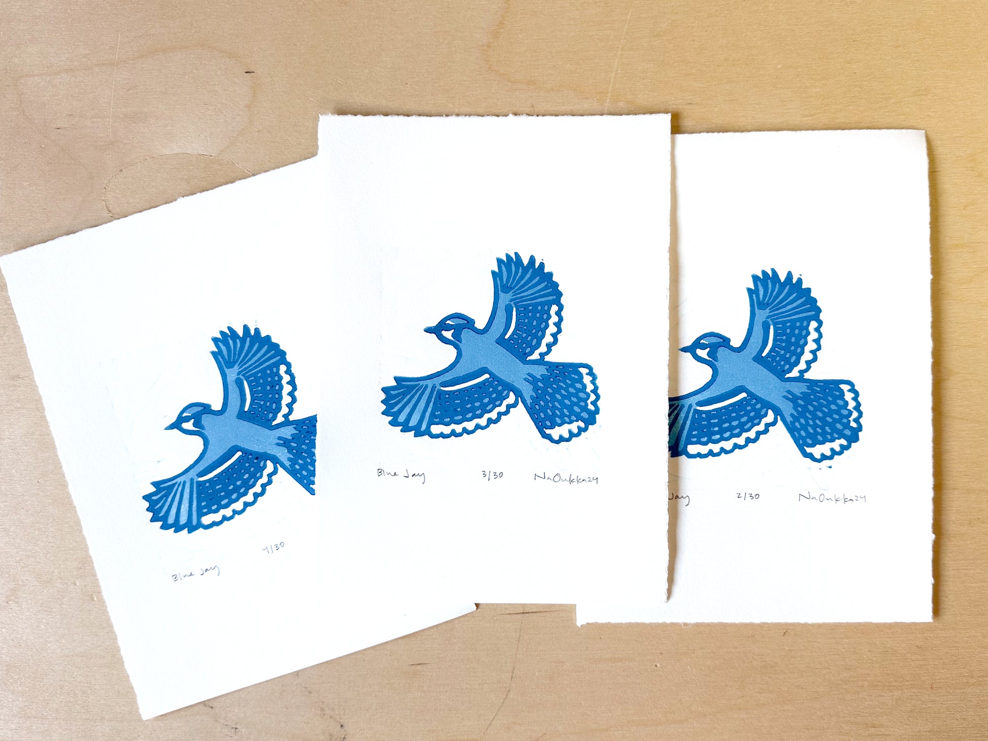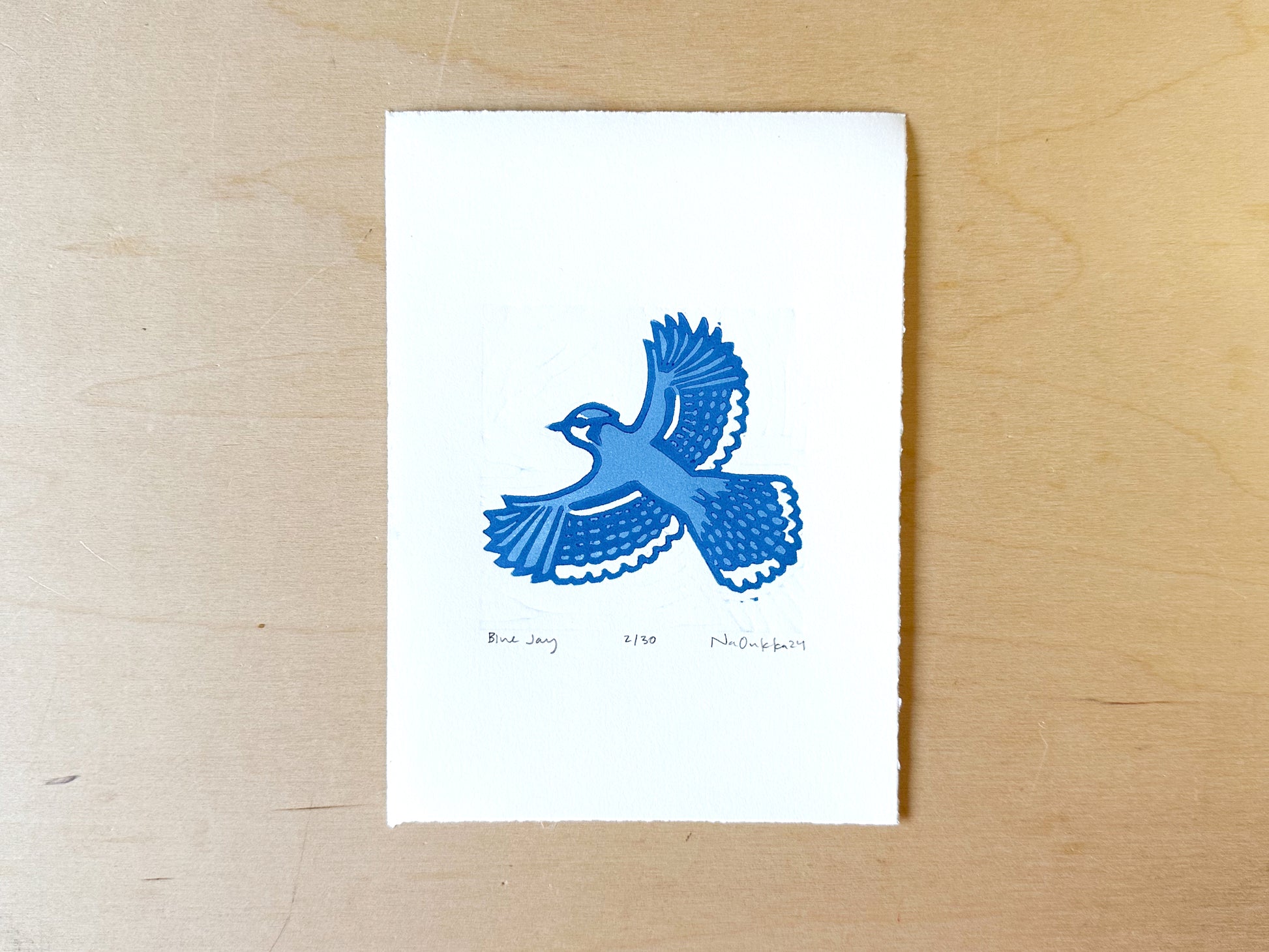 Blue Jay Woodcut Print