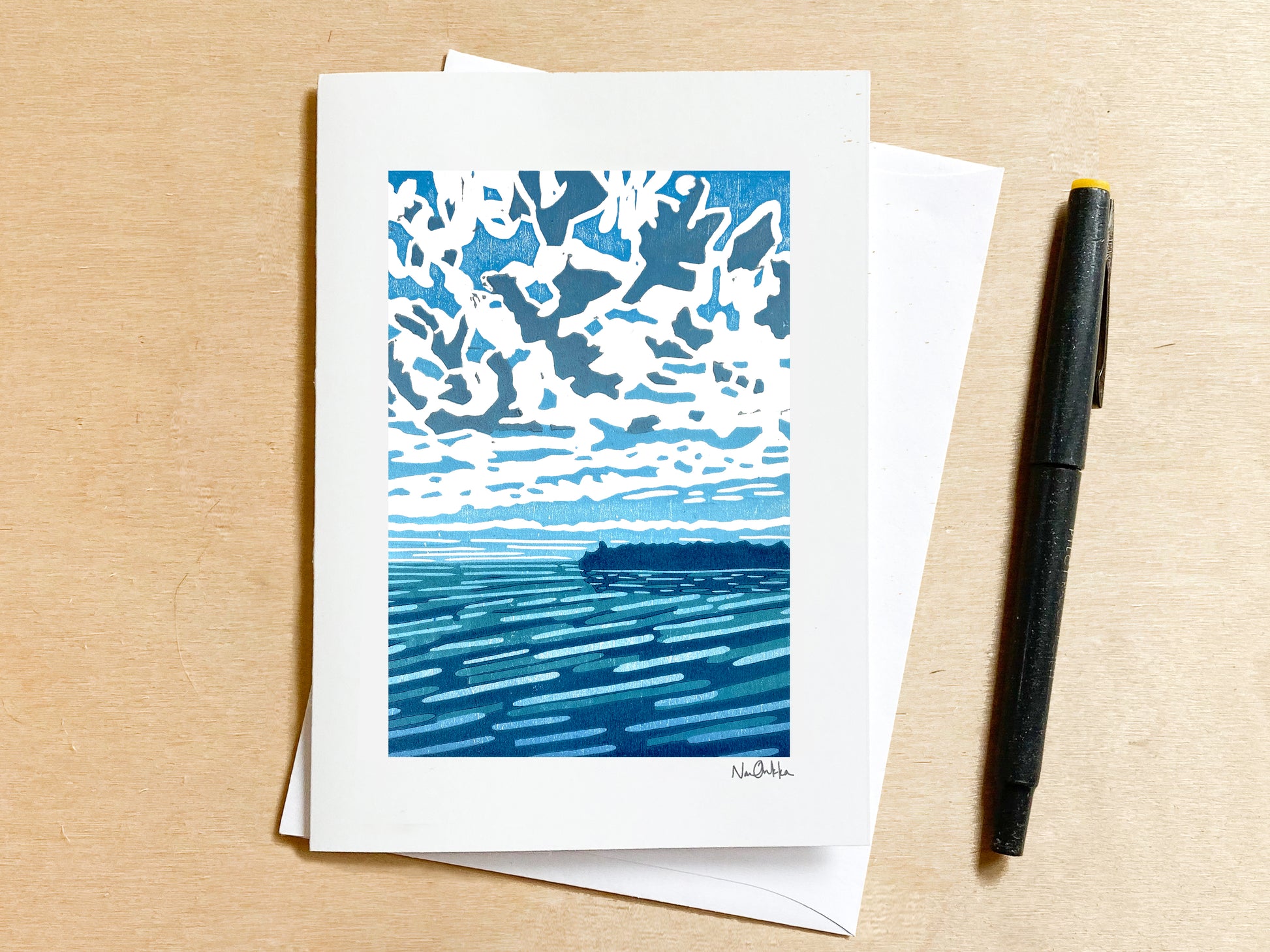 Looking for a uniquely beautiful greeting card that's both eco-friendly and locally crafted? You've come to the right place! These blank greeting cards come in the standard A6 size with white envelopes. Each card features one of Nan Onkka's timeless woodcut prints. The original woodcut was hand-carved by Nan in her home studio in Grand Marais, Minnesota. Her artistic skill and attention to detail shine through in every card, making them truly one-of-a-kind. Whether you are celebrating a milestone, mourning a loss, or simply saying hi, these blank cards are perfect to have on hand for any occasion.