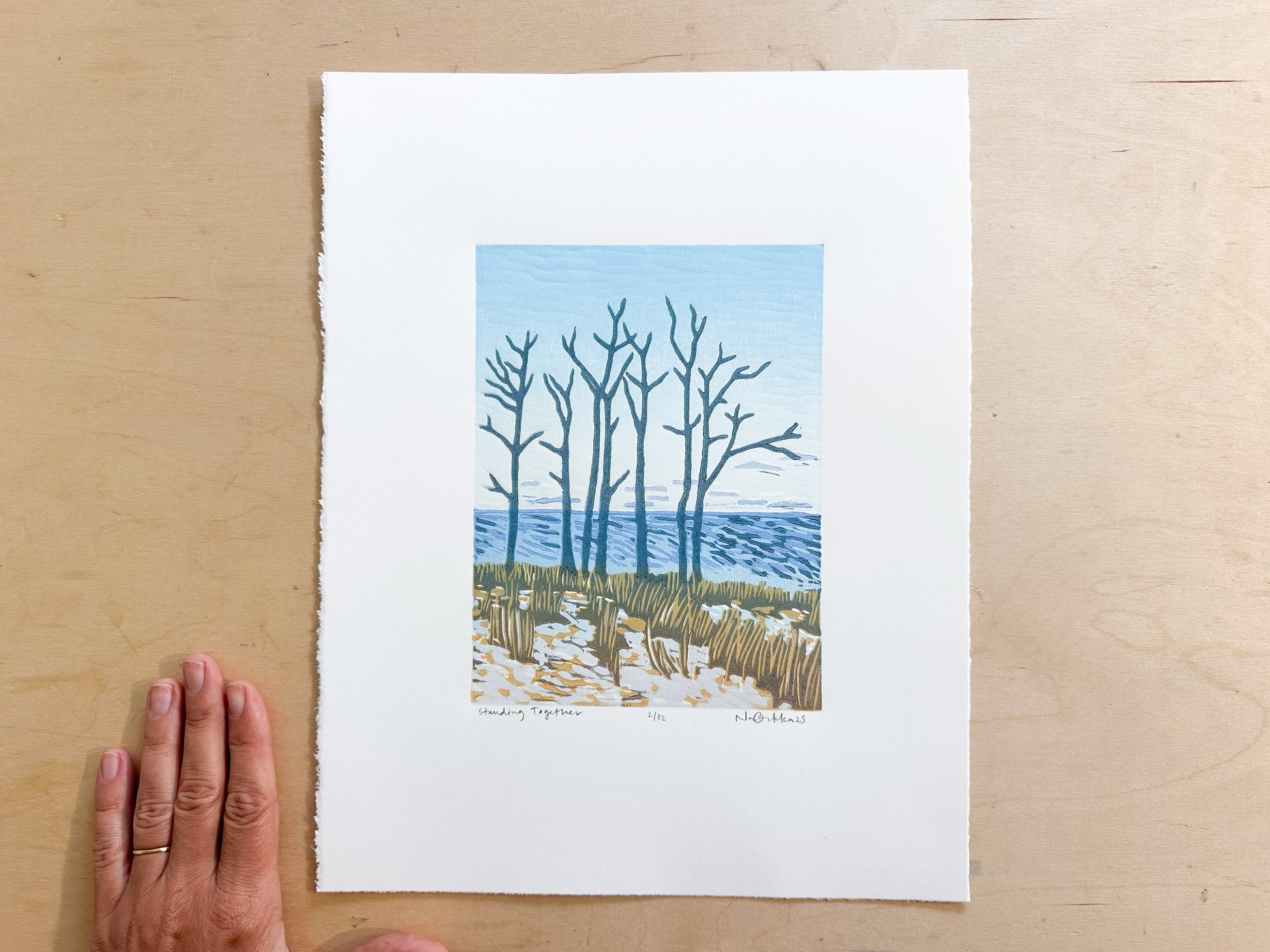 Standing Together Woodcut Print